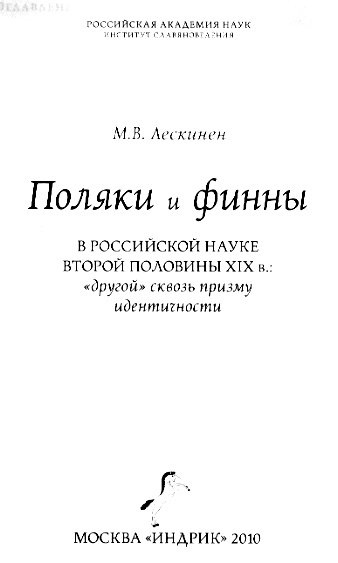 Polâki i finny v rossijskoj nauke vtoroj poloviny XIX v. : "drugoj" skvoz' prizmu identičnocti
