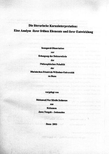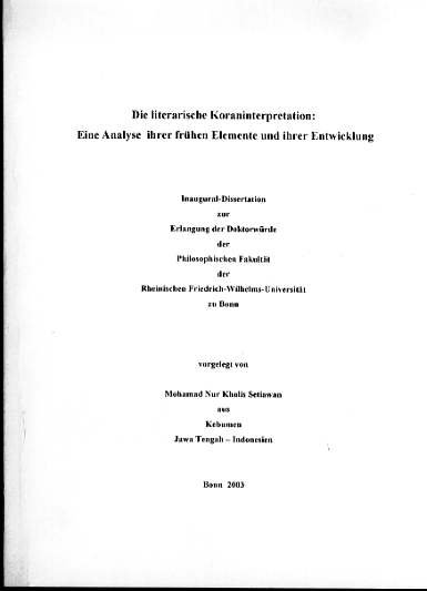 Die literarische Koraninterpretation : eine Analyse ihrer frühen Elemente und ihrer Entwicklung